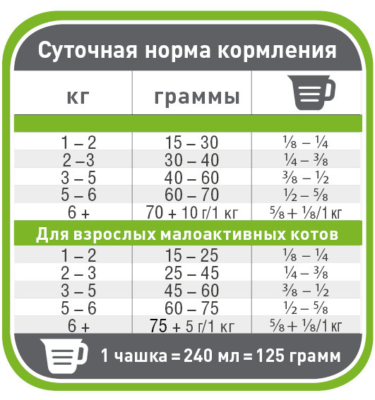 АНАЛИЗ СОСТАВА: протеин – 28%, жир – 18%, клетчатка – 3,5%, зола – 7,5%, кальций – 1,2%, фосфор – 0,95%, натрий – 0,3%, магний – 0,11%.